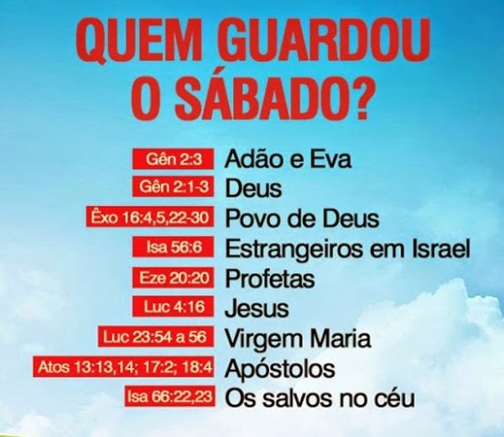 Referência para Meditação: Gênesis 2:1-3; Êxodo 20:8-11; Lucas 4:16; Isaias 56: 5 e 6;Isaias 58:13 e 14; Mateus 12:1-12; Êxodo 31:12-17; Ezequiel 20:12 e 20; Deuteronômio 5:12-15; Hebreus 4:1- 11; Levítico 23:32; Marcos 1:32; Marcos. 2:27 e 28.